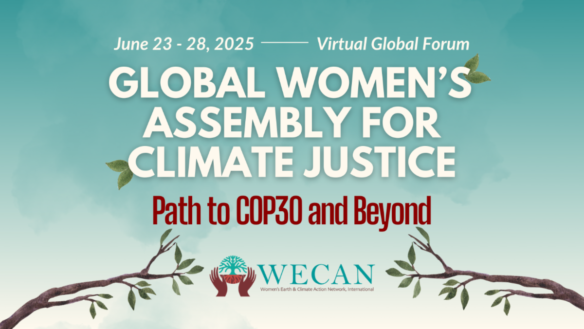 Please join us from June 23-28 for the WECAN Global Women’s Assembly for Climate Justice: Path to COP30 and Beyond! This event is a free, public forum taking place virtually in June 2025 - all are welcome!