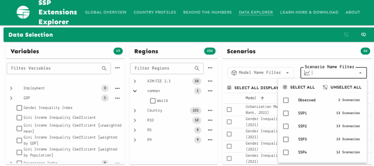 WECAN recently learned that, having reviewed our presentation, these scientific communities have been working diligently to develop new models that include demonstrating the impact of gender equity upon emissions. You can see this inclusion in the SSP Extensions Explorer (pictured below), a framework for the next generation of climate models!