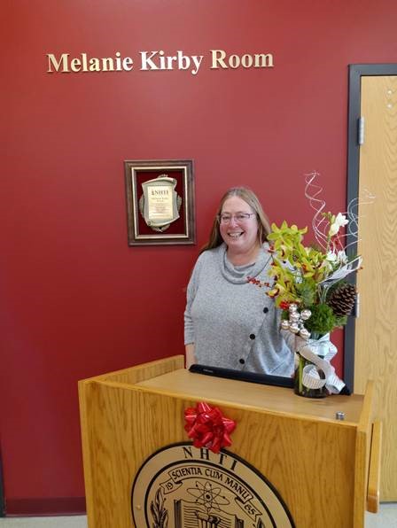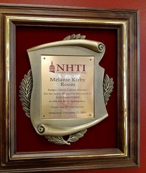 December 17, 2021 was declared Melanie Kirby Day in honor of the nearly 40 years that Melanie served the Community College System and NHTI. President Mullin-Sawicki, with approval from Chancellor Rubinstein, has officially renamed the Capital Commons Conference Room in Little Hall to the Melanie Kirby Room.