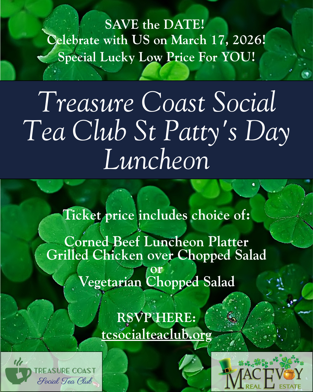 Visit our WEBSITE - tcsocialteaclub.org to REGISTER & PREPAY for the luncheons!