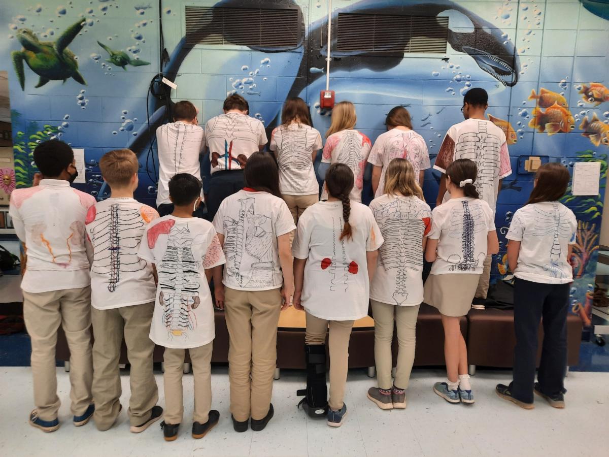 Liberty Tech Charter School 7th graders have been studying body systems and how they interact with each other to carry out life processes. To illustrate what they learned, they designed t-shirts with illustrations of the body systems and their connections to one another.