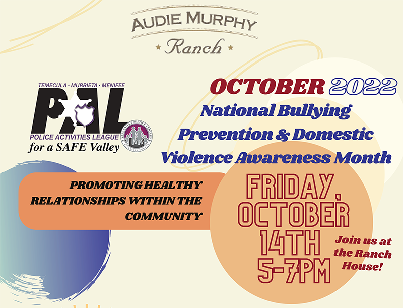 Friday, October 14 at 5 PM - Safe Family Justice Center & Menifee Police at Audie Murphy Ranch