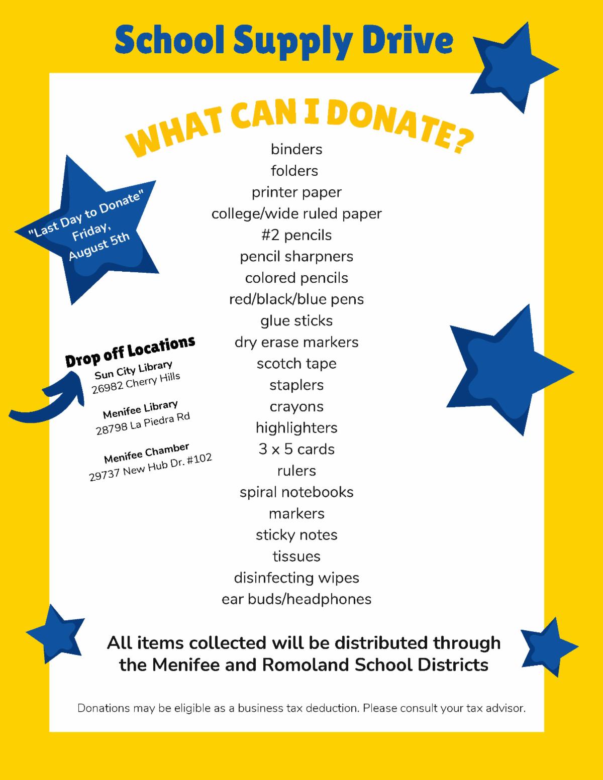 Order your poster through the Menifee Chamber and receive a free updated version for changes within the calendar year. Available in English and Spanish.