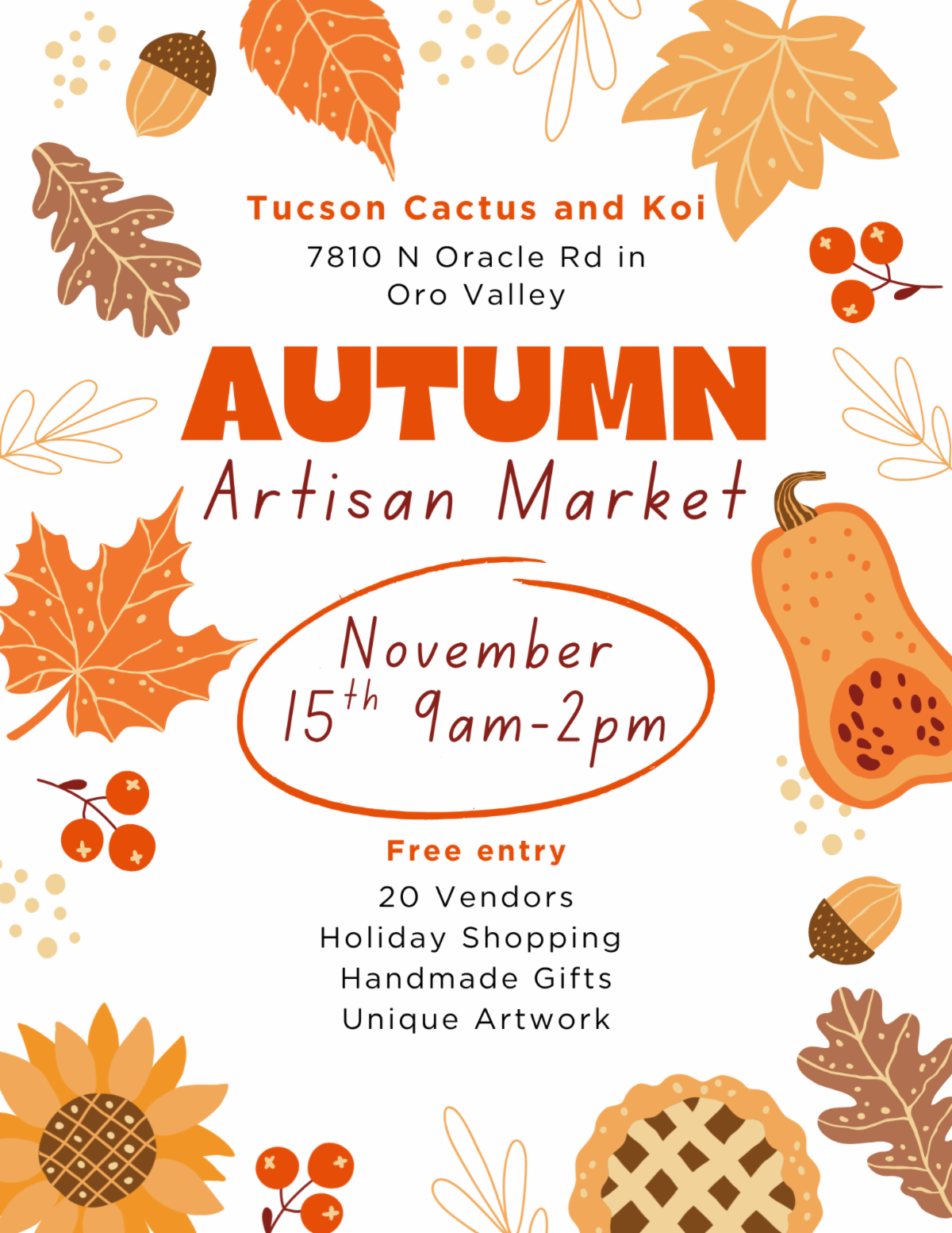 ------Tucson Cactus and Koi is thrilled to announce the launch of a new seasonal tradition: their inaugural Autumn Artisan Market!