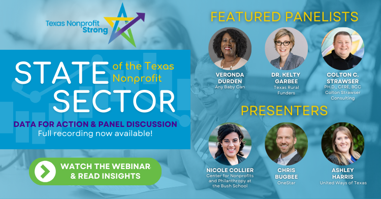 Last month, we hosted a State of the Texas Nonprofit Sector webinar to learn from front-line voices and identify meaningful ways to take action to better support our communities. Check out our event recap to read our top five insights from the panel discussion, download slides, or watch the full recording!