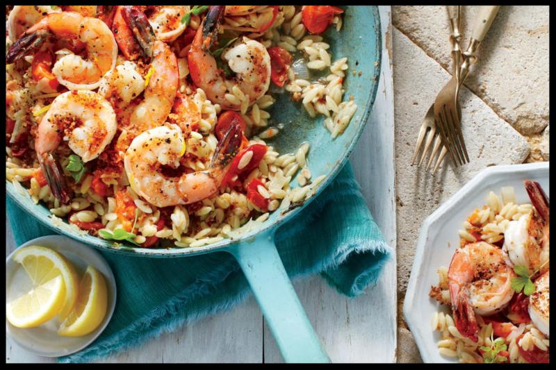 This perfect late-summer seafood supper comes together in under an hour. You'll want to sprinkle the cheesy, buttery, lemony breadcrumbs on just about everything—and we don't blame you.