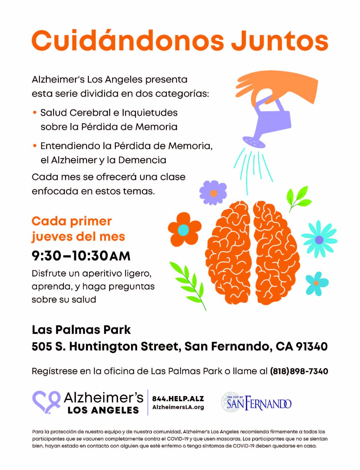 This workshop offers discussion on important topics related to brain health, memory loss, dementia, and other related issues. The goal is to equip attendees with valuable tools to better understand and manage Alzheimer’s-related challenges. Classes are offered in Spanish on the first Thursday of the month at Las Palmas Park. Register today by calling (818) 898-7340.