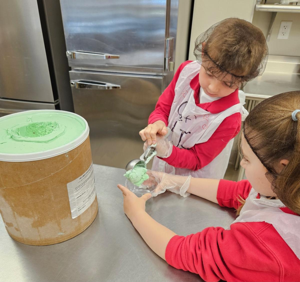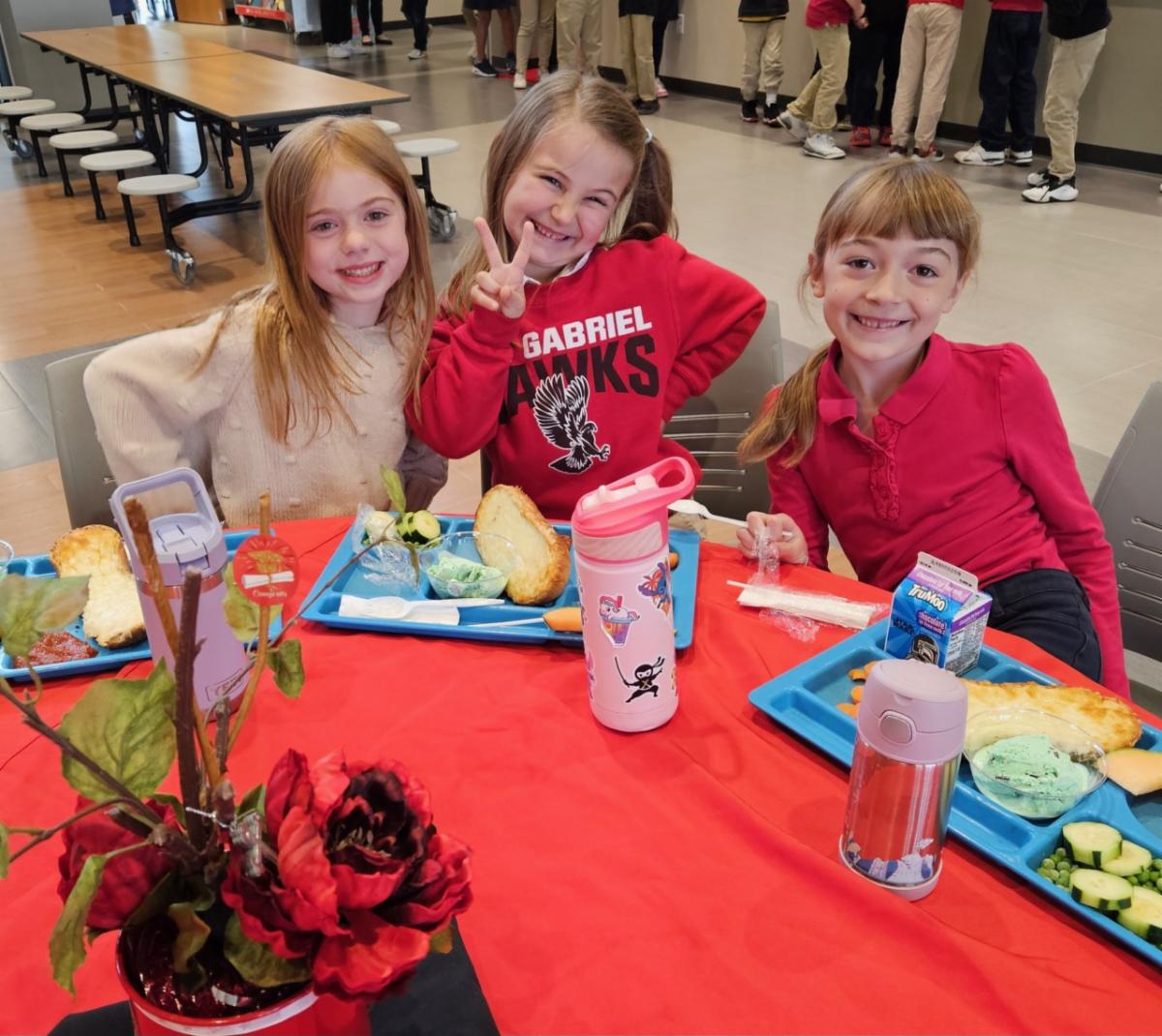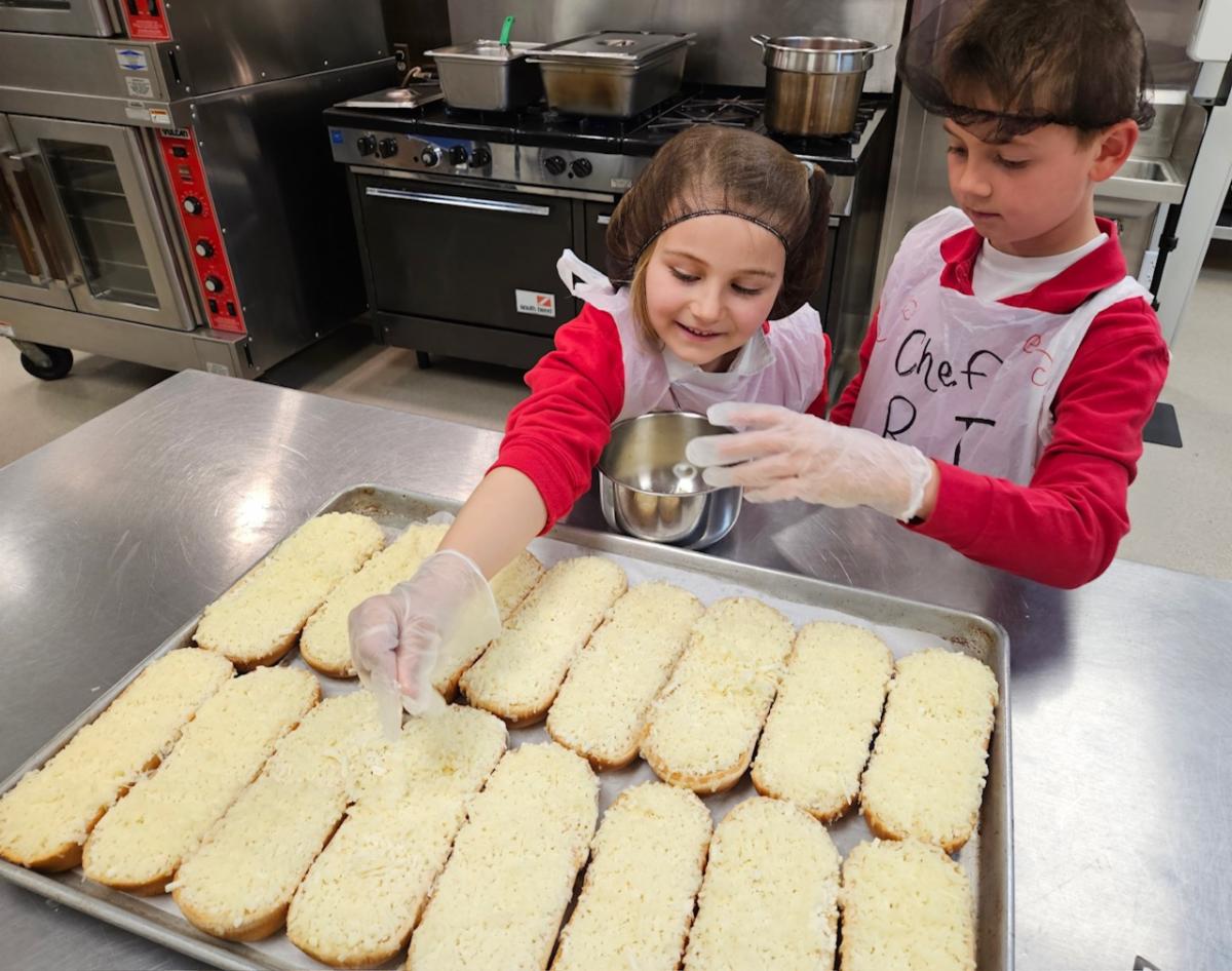 Our lunch director, Mrs. Weyer, had extra special help in the kitchen last week! Two young chefs, first-grader Leona and second-grader RJ, joined her to create and prepare a delicious school lunch for the entire school—an unforgettable experience their parents won at our Parish & School Auction this past March.