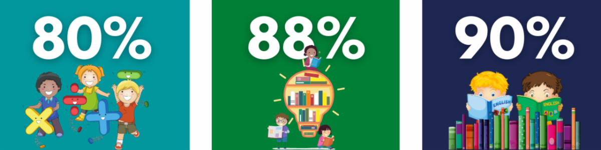 Math: 80% Reading: 88% Language: 90%