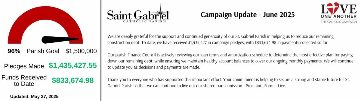 We are excited that our St. Gabriel family is growing and hope that your family continues to be a part of all we have to offer.