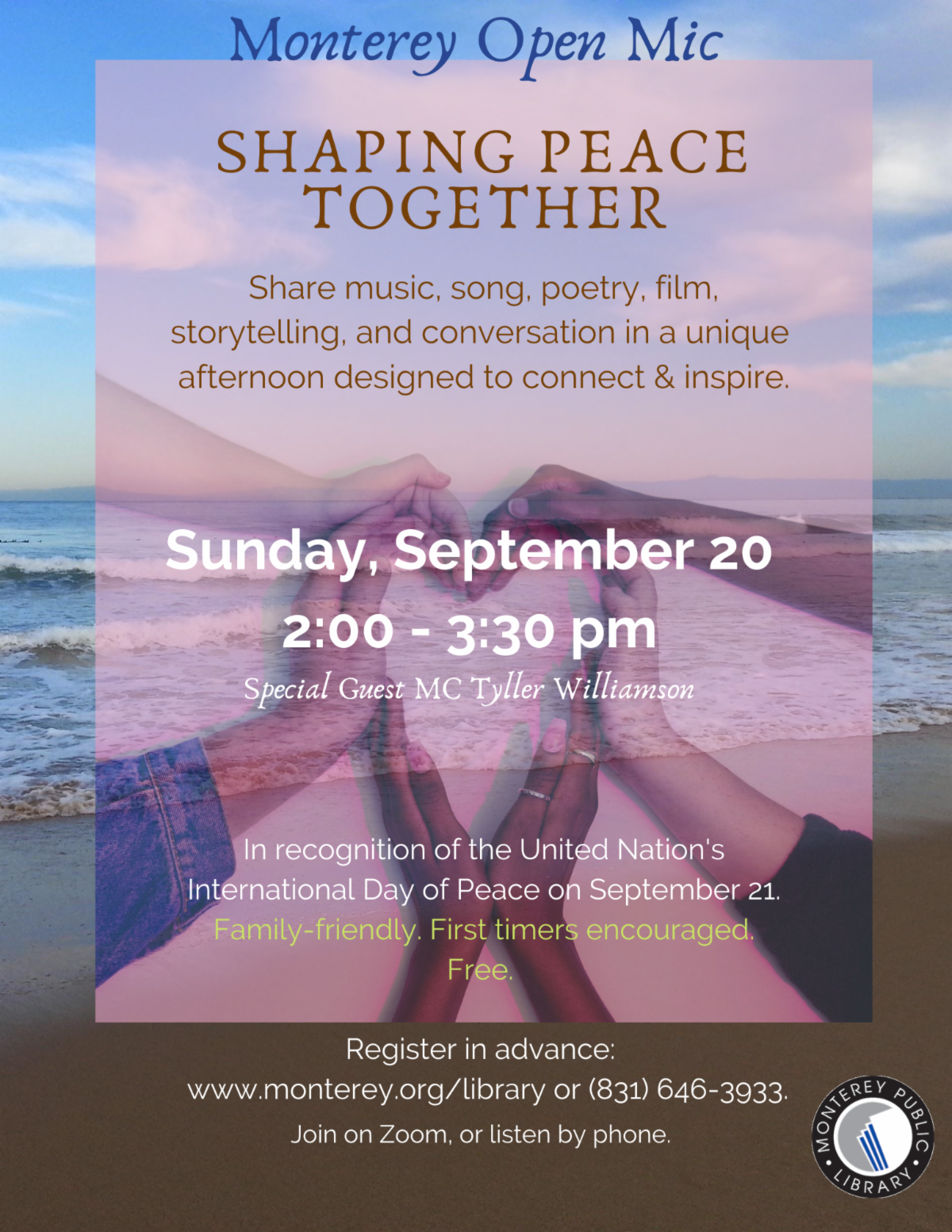 Share your music, poetry, storytelling, film, and artistry at a unique and uplifting afternoon that weaves together our community's creative talent with interspersed opportunities to connect in conversation. In recognition of the United Nation's International Day of Peace and 75th anniversary. Join us so that we can shape peace together.