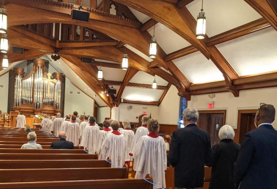 This wave of Covid19 has begun to abate both in Massachusetts, as well as around the country. (https://www.mass.gov/info-details/covid-19-response-reporting) We are seeing fewer new cases and the proportion of tests coming back positive continues to decrease. The Re-Opening Task Force therefore feels it is safe for the congregation to resume singing (masked) of the hymns, as well as the Gloria and the Doxology. We will continue with masking and social distancing while we are in the Sanctuary, and all other indoor spaces.