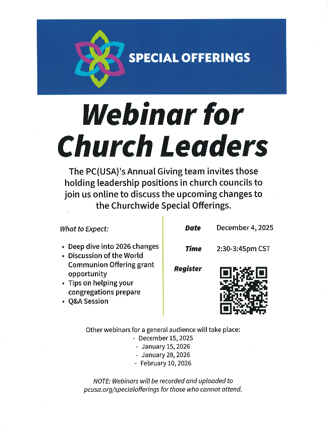 We have supported The Rodheaver Boys Ranch, Bread of Life Soup Kitchen, Families at Christmas, Browning Pearce Elementary School, and Presbytery Missions over the years.