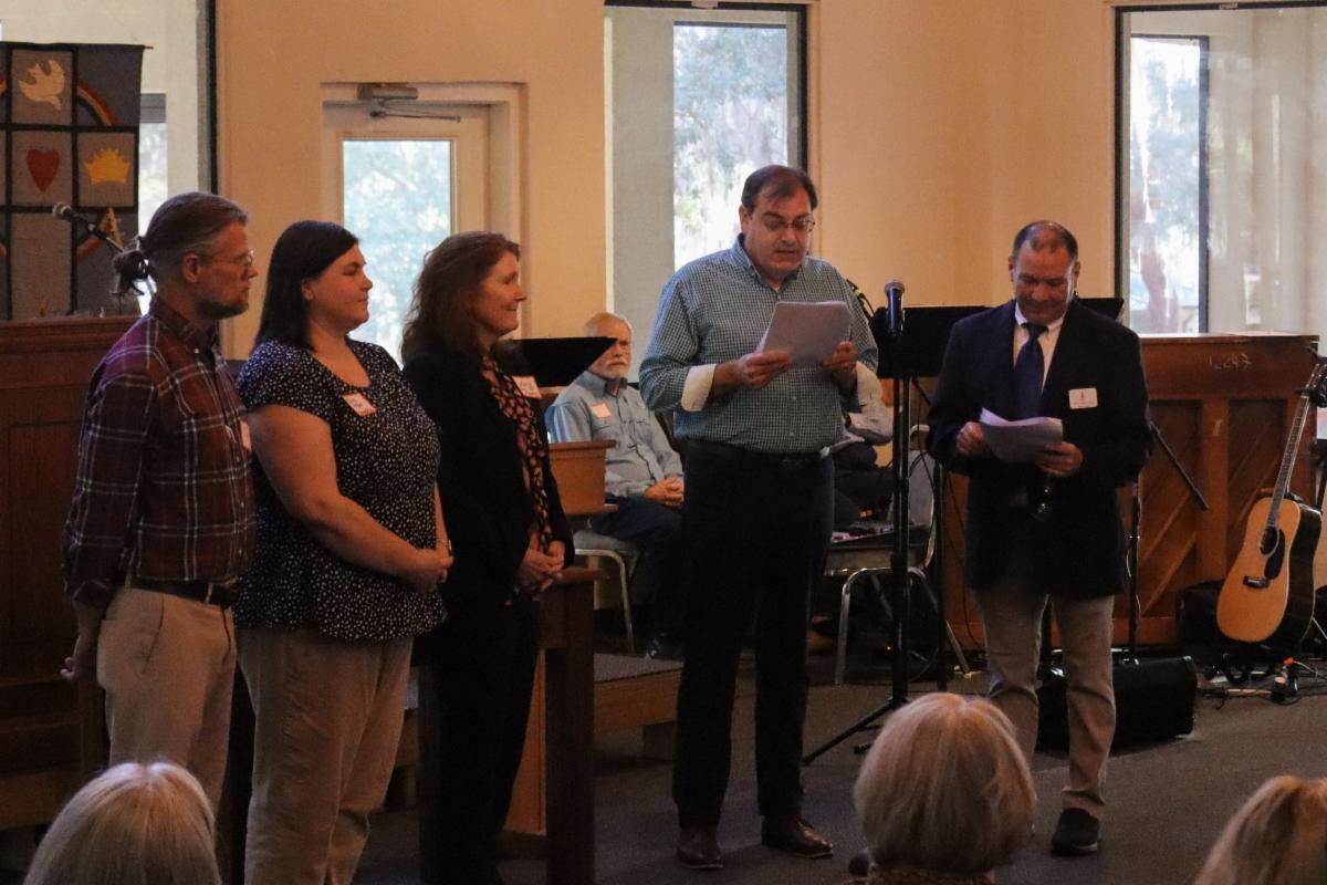 • Introductions of Rev. Bob Scott, Interim Pastor at Fort King; Rev. Cheryl Duke, Temporary Pastor at Grace, Rev. Libby Rollins, Temporary Pastor at St. Giles, and of Candidate Mary Scine, member of Memorial.