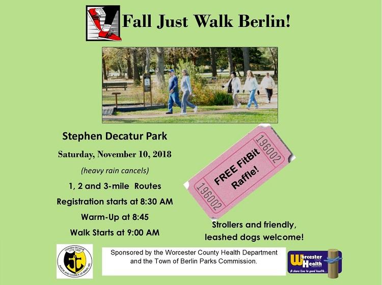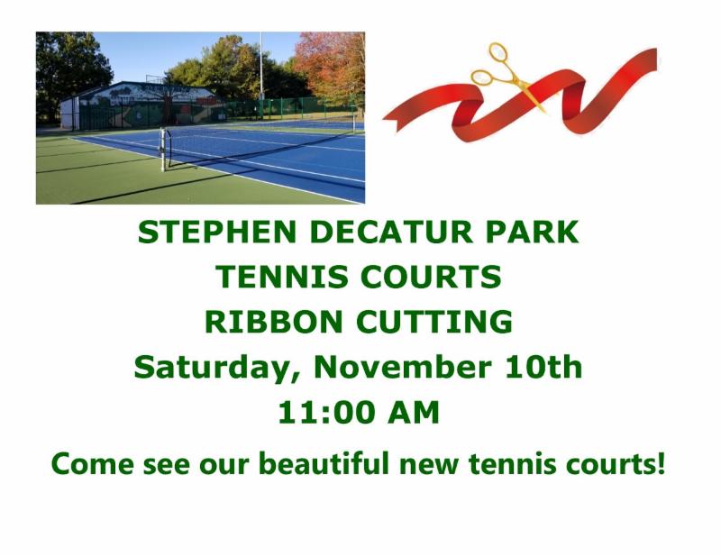 The Berlin Parks Commission invites you to join us at Stephen Decatur Park on Saturday, November 10th for two events. Beginning at 8:30 AM is the Fall Just Walk and then, at 11 AM the long-awaited Ribbon Cutting for the new Tennis Courts.