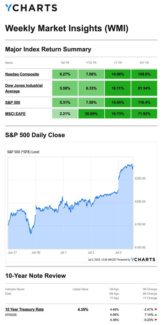 Source: YCharts.com, July 5, 2025. Weekly performance is measured from Friday, June 27, to Thursday, July 3