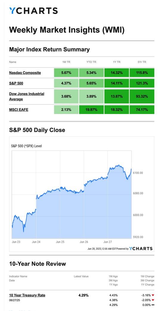 Source: YCharts.com, June 28, 2025. Weekly performance is measured from Monday, June 23,
