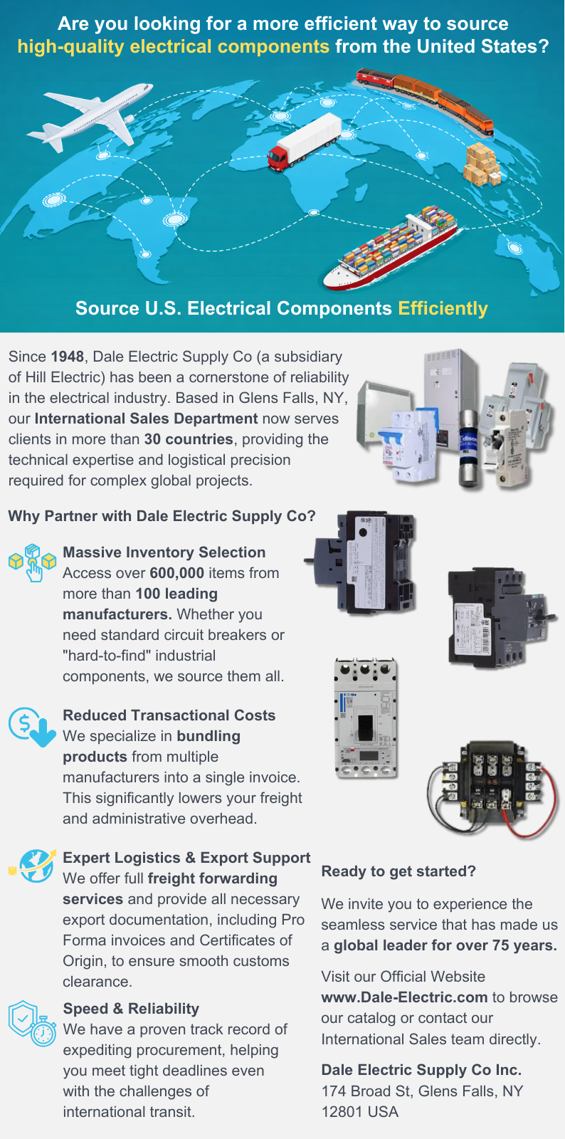 Dale Electric Electric Supply Co., we supply quality electrical products and dependable service to customers around the world.