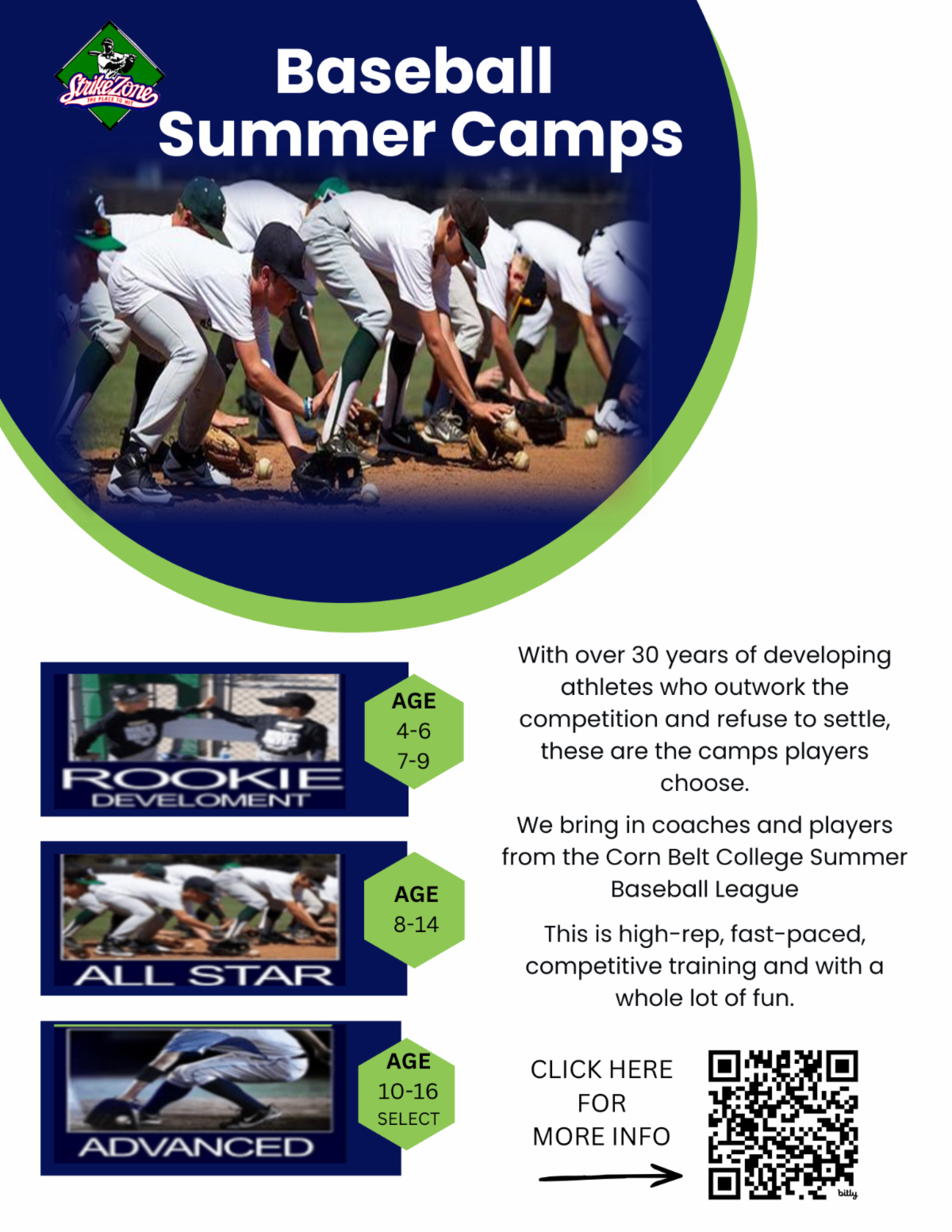 The Strike Zone Baseball Camps are built for players who want to work hard, level up their skills, make new friends, and have a blast doing it. Our camps are led by CBL college coaches and players, alongside our elite Strike Zone training staff, giving your player hands-on instruction in the latest techniques—and a real look at what it takes to compete at the next level.