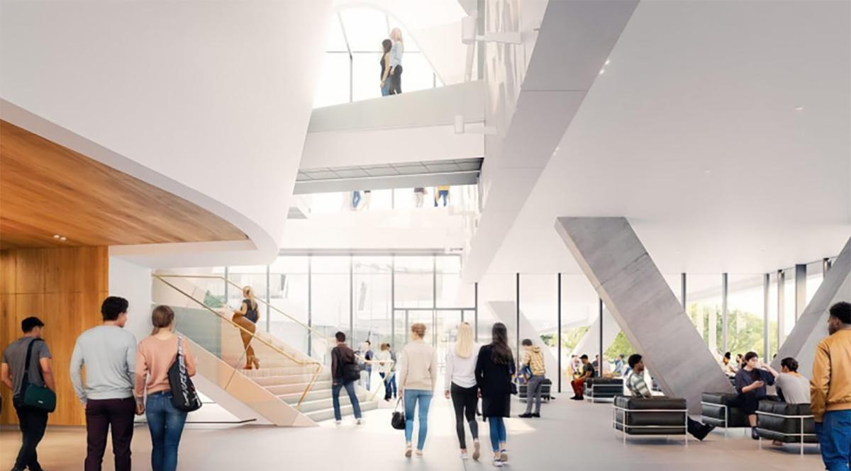 UT Dallas' new performance hall will showcase 7 Sentech structural glass walls & an overhead application to create an expansive, bright space.