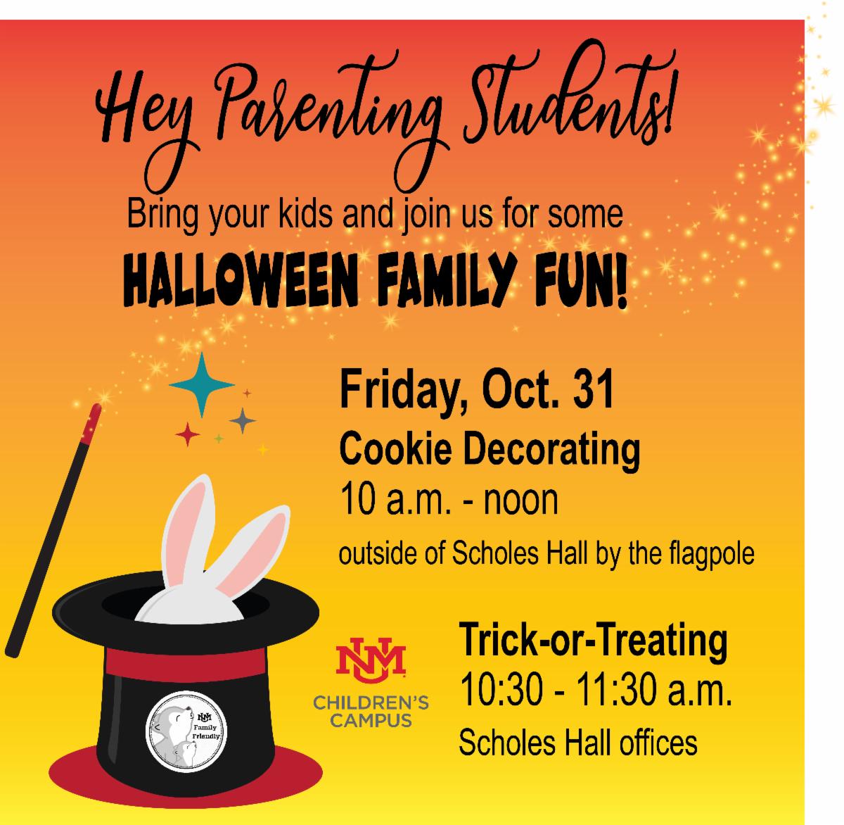 The celebration begins Monday, Nov. 3, with two events: a kickoff at the College of Nursing from 11:30 a.m. to 1:30 p.m., and a Parenting Students Lunch & Learn in SUB Room 1034 from 11:30 a.m. to 12:30 p.m.