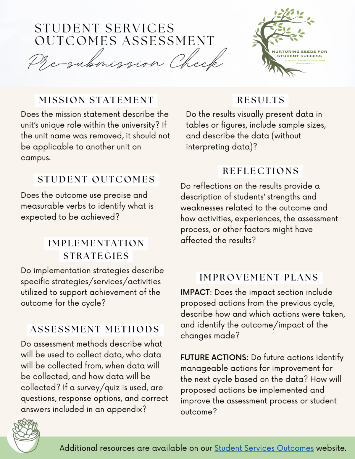As a reminder, all Student Services units should update previous sections in assessment documents, complete Gi. Impact of Past Improvements and Changes, and identify new actions to be implemented in Fall 2023 for Gii. Use of Assessment Results for Future Improvement. Check out the bottom of this message for guiding questions and tips for these sections.