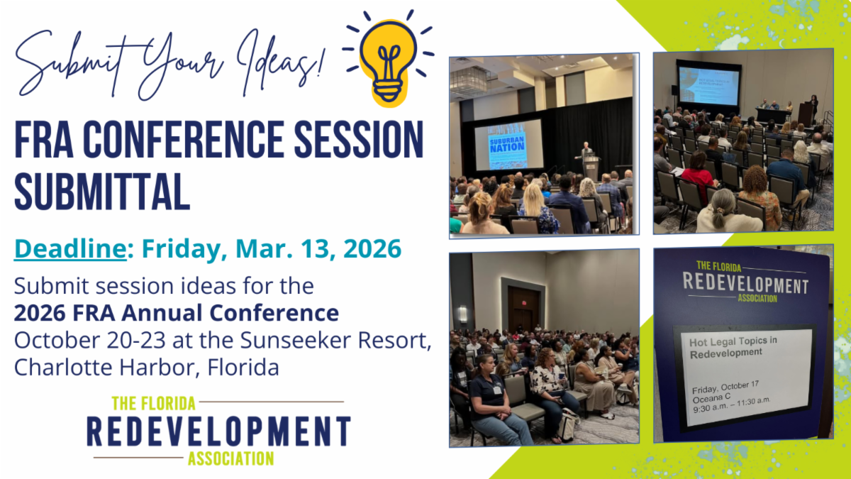 | | | | Thank you for supporting Florida redevelopment! Have questions or news to share? fra@flcities.com | | | | |
