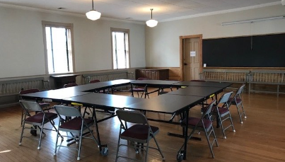We are pleased to offer the 2nd floor Meeting Room of The Grange Hall for rental. The room holds 60 people seated or 100 standing. The facility includes a kitchen, elevator, Wi-Fi, easels, a projector and screen, and a podium and microphone.