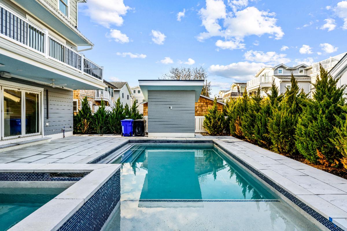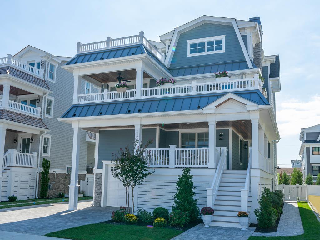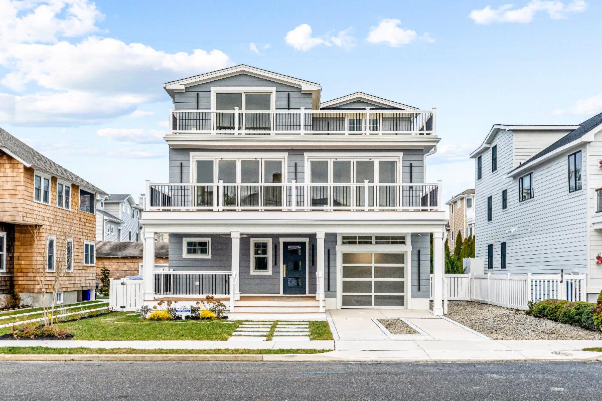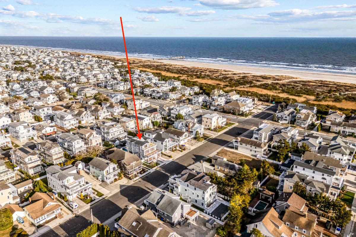 Just 8 homes from the 37th St. beach path! This 3,800 sq. ft. luxury retreat features a first-floor family room with a wet bar, a gourmet kitchen with Sub-Zero and Wolf appliances, a third-floor primary suite with a private deck, and a backyard oasis with a pool, spa, marble deck, and outdoor TV wall.