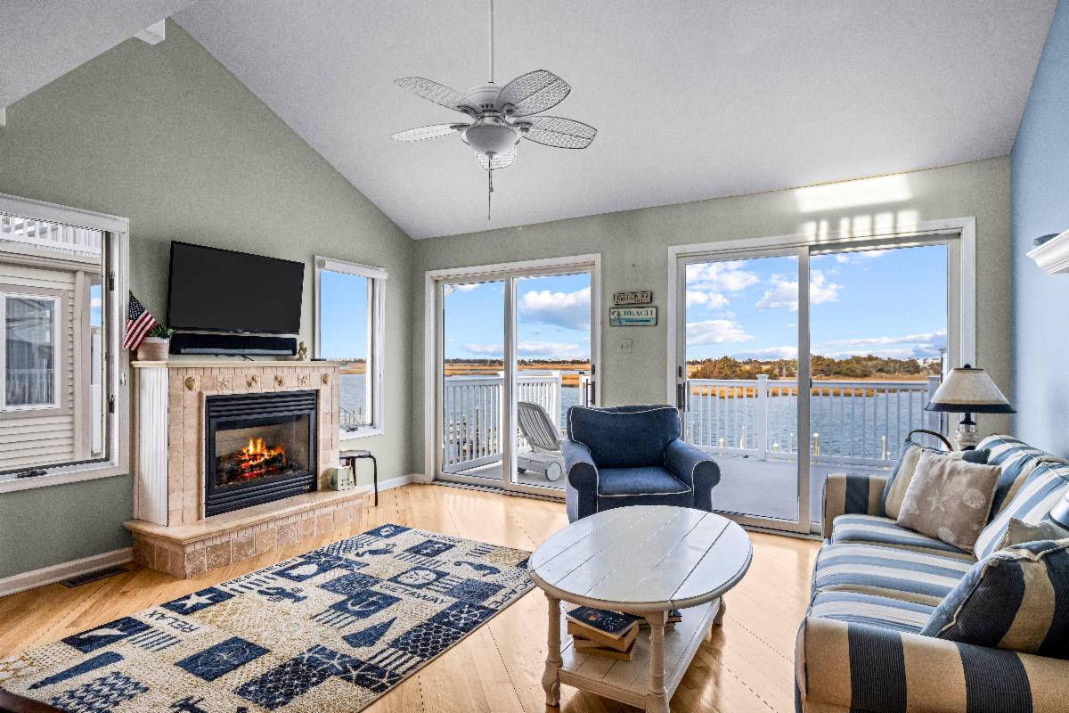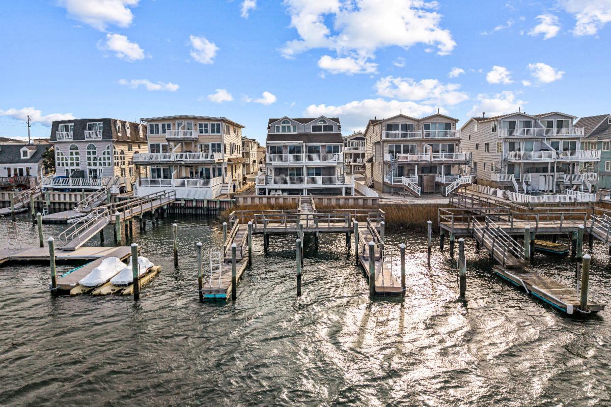 This bayfront townhome sits on a protected, no-wake basin, offering panoramic water and wetlands views. The split-level design provides privacy across four bedrooms and three full baths. The top floor features a spacious kitchen, dining and family room with a large bayside deck. A floating dock, two boat slips, and a newer bulkhead complete the waterfront setup. Just two blocks to the beach and a short walk to town. Offered fully furnished.