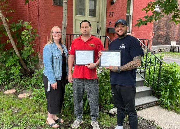 This past month a fire had started in a bedroom in one of Daybreak's houses. Two residents, Pat and Doug, heard the fire alarm, and investigated for the cause. They checked under a door that had smoke coming out of it, and saw a fellow resident unconscious on the floor. Pat and Doug acted quickly, broke the door down, and got their fellow resident to safety, put the fire out, and ensured everyone was okay.