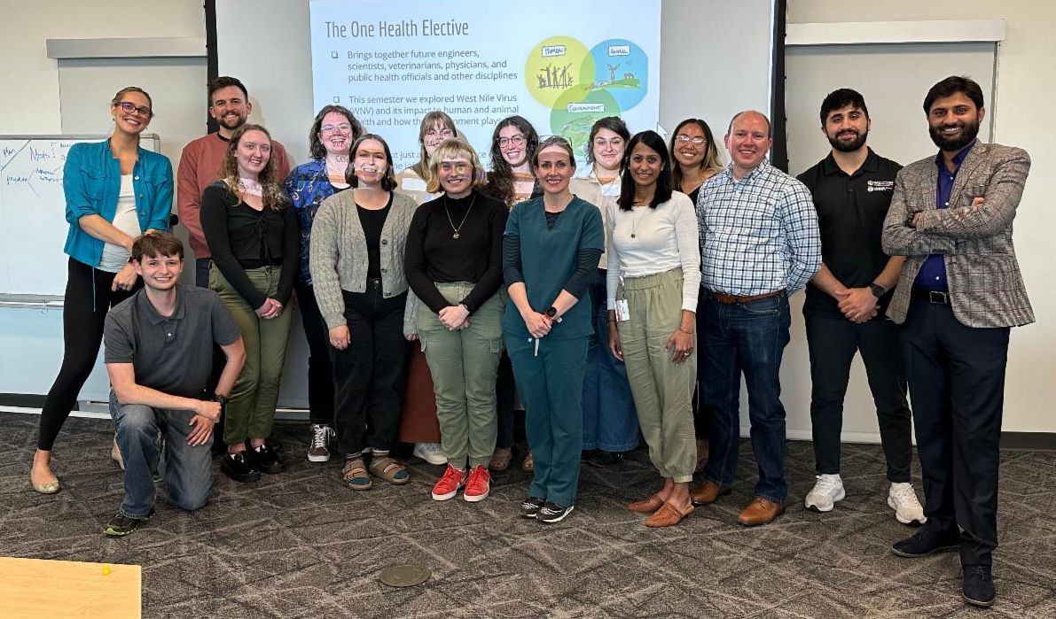 CSU's One Health Institute launched the One Health in Communities course focusing on the increase in West Nile Virus (WNV) cases in Larimer County, with 51 cases including neurologic disease and 11 deaths in 2023. This year the course enrolled 14 graduate and professional students from veterinary medicine, human medicine, public health, microbiology, immunology and pathology, and engineering. As a part of the course, the students conducted a seroprevalence study to measure WNV antibodies within the city of Fort Collins to obtain a better understanding of where exposure to the virus was occurring, a study that had not been done in the area for two decades. | |