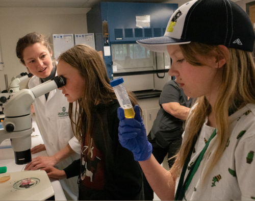 For the second year, the CSU One Health Institute sponsored the 4-H Youth Veterinary and One Health Camp. This year’s camp brought 80 youth campers and 16 chaperones from 28 counties in Colorado to CSU. The focus of the camp is to engage 4-H youth and to introduce them to the concept and importance of the One Health approach to improve animal and human health. Five One Health lessons were delivered on topics from zoonotic disease to the relationship between climate and health that anchored the three-day camp. Campers also visited CSU’s equine, infectious disease research, and agricultural research facilities to learn about CSU’s opportunities for veterinary education and other programs. The camp highlights a partnership between CSU Extension and Engagement, statewide 4-H leaders, local veterinarians, the CSU College of Veterinary Medicine and Biomedical Sciences, and the One Health Institute to support and inspire future One Health professionals. | |