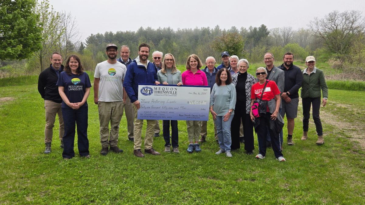 MTCF awarded $49,059 to Restoring Lands (formerly Ozaukee Washington Land Trust & River Revitalization Foundation) to help fund a connector trail between Spirit Lake Nature Preserve and Pukaite Woods at Rotary Park. Two rich natural areas featuring trails, wetlands, and native species will be forever linked into a 3.5-mile network of footpaths and boardwalks in the heart of Mequon. Donors who contributed to this project via a paddle raise at MTCF’s 2024 Pillar of the Community Luncheon, honoring Connie Pukaite, got a sneak peek at the trail progress on May 15th after the check presentation.
