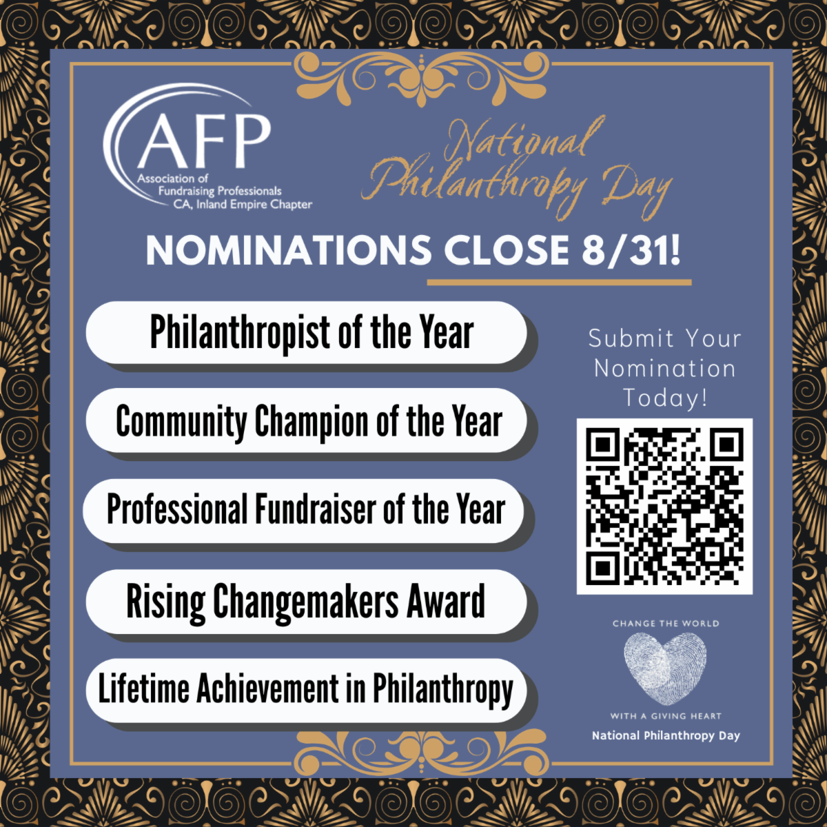 With National Philanthropy Day just around the corner on November 18, we have an exciting opportunity to recognize and honor the incredible individuals and organizations that make a difference in our field. I encourage you to submit nominations by August 31 for outstanding donors, peers, and organizations who have demonstrated exceptional commitment to philanthropy. It’s a great way to highlight the individuals who inspire us all.