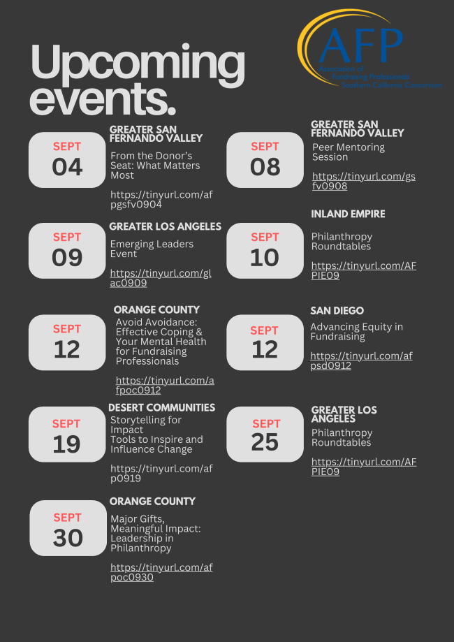 In addition to National Philanthropy Day preparations, we have several fall events you won’t want to miss: