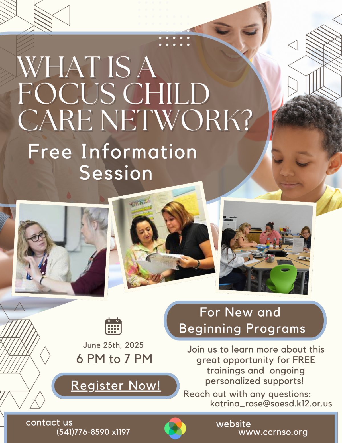 Summertime and sunshine are here! There are also many opportunities to embrace growth, awareness, and making a positive difference to the children and families in our community. This newsletter contains learning opportunities, activities, and enrichment ideas, including our revised summer training calendar. If you would like us to email this to your staff, send us their contact info at ccrn@soesd.k12.or.us. As always, we would love to hear from you if you have any ideas that we can share in our next newsletter.