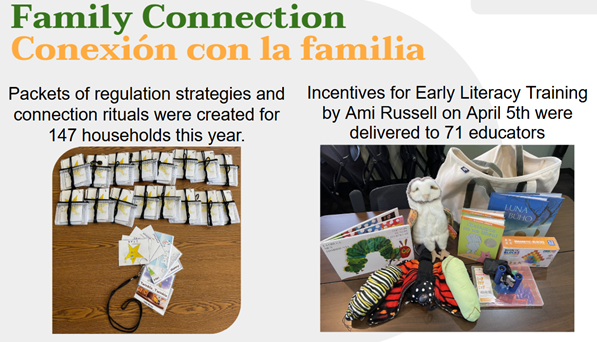 Social emotional regulation and connection strategies “packets” were provided for 147 households to keep children and their families practicing through the summer.