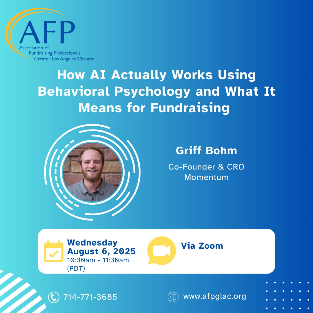 Bridget and Jonathan’s paths into fundraising were anything but traditional- but what they share is a deep appreciation for the mentors, communities, and unexpected opportunities that helped shape their careers. Now, as co-chairs of AFP-GLAC’s Emerging Leaders Initiative, they’re committed to creating space for early- and mid-career fundraisers to build community, grow alongside a cohort of peers, and access the same kind of support that made a difference in their own journeys.