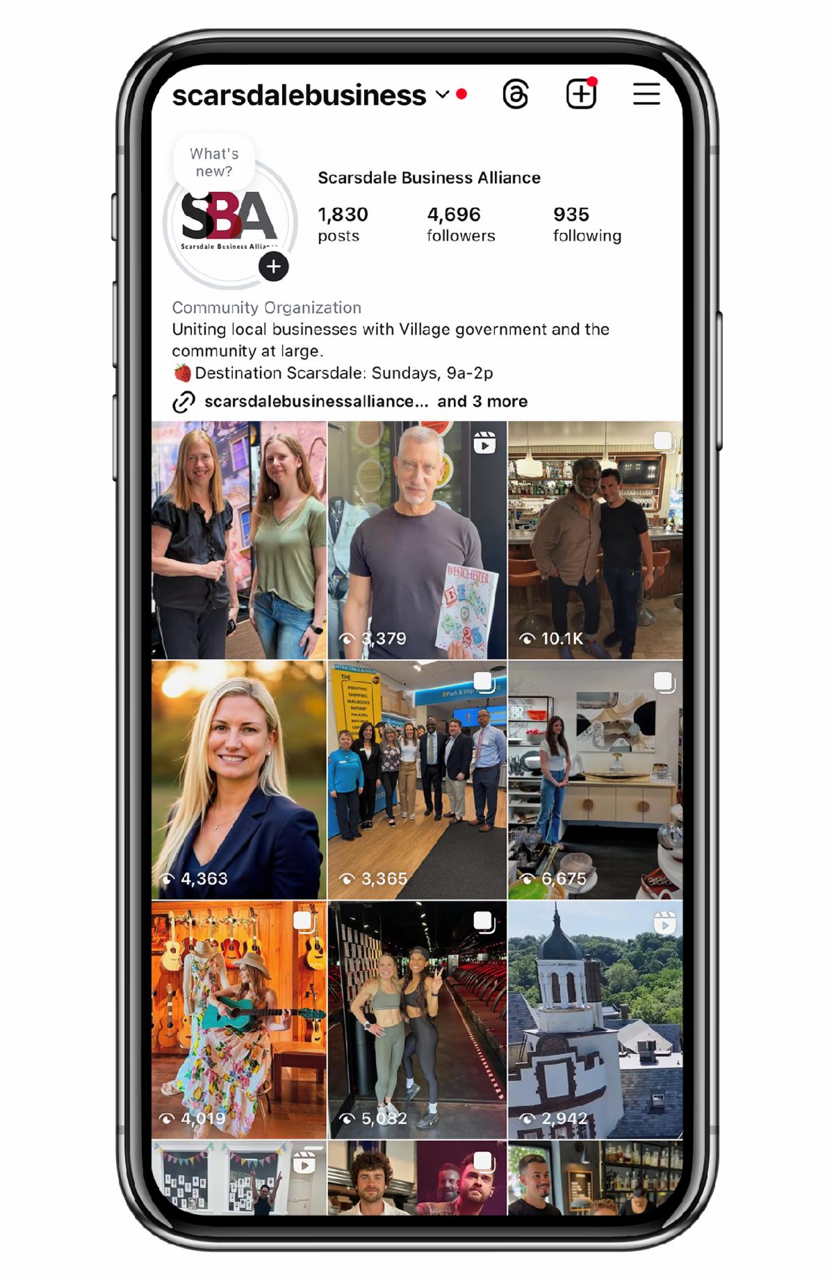 Use your own Instagram account to create attractive content in support of your business (good visuals, not a lot of copy in the pics) and then tag the Scarsdale Business Alliance in your posts.