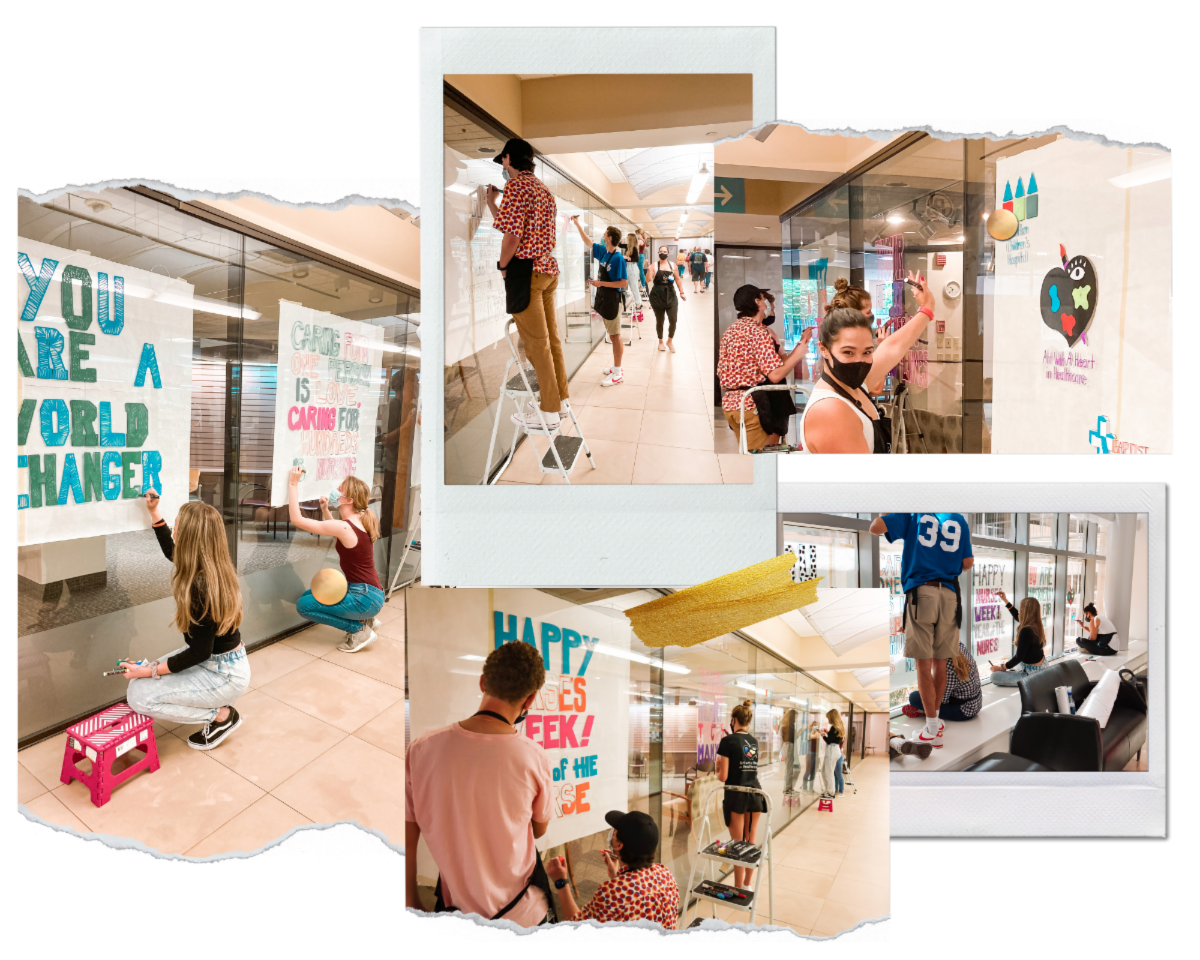 AWAHIH kicked off Nurses Week 2021 by decorating the windows at the temporary entrance of WCH with artwork and inspirational phrases to show our appreciation for the hardworking nurses of Baptist Medical Center Jacksonville (BMCJ) and WCH.