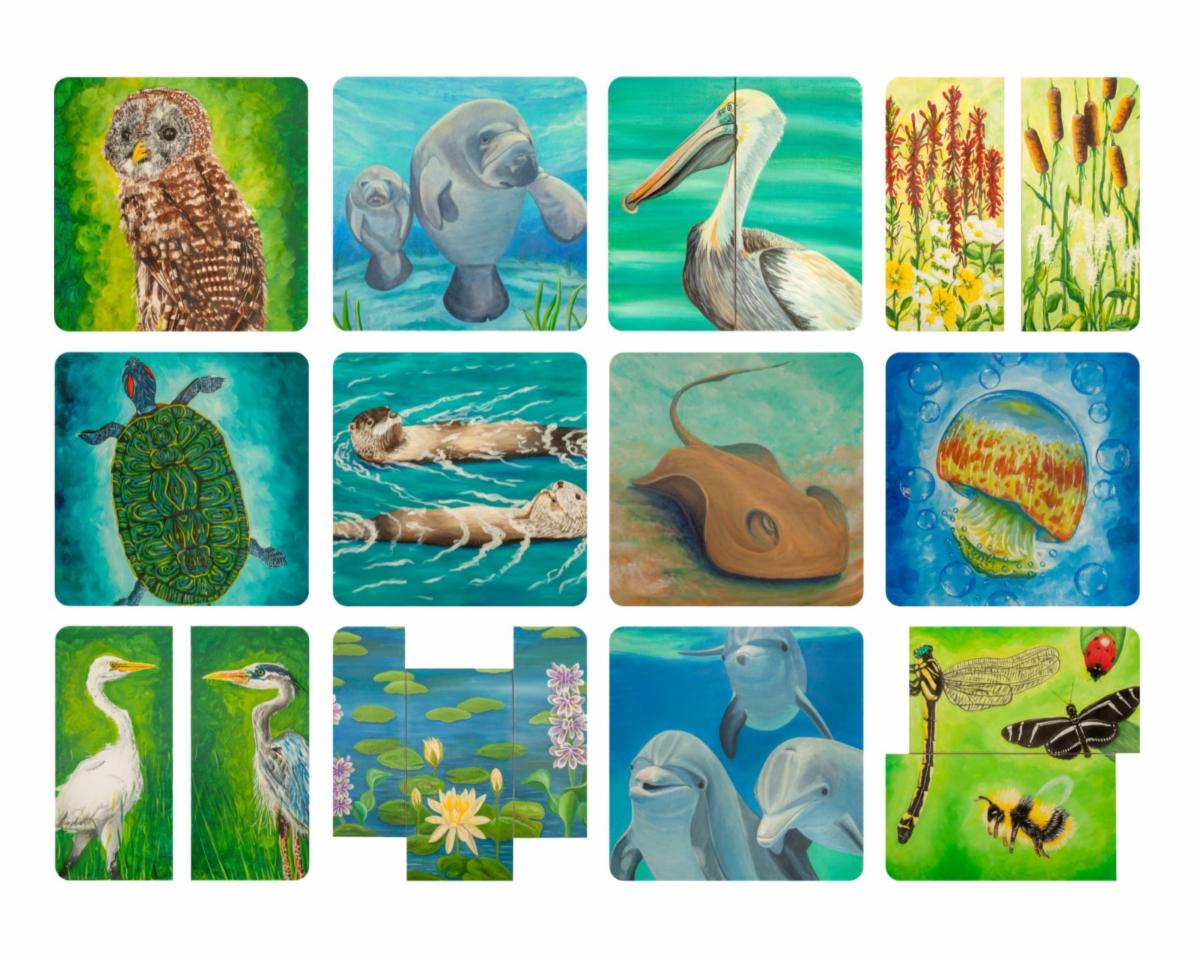 AWAHIH artists, in partnership with Nemours Children’s Specialty Care Clinic of Jacksonville, have created paintings for the Pulmonology/Allergy Clinic on the 8th floor of the Nemours building. These paintings for patients, their families, and the staff of Nemours highlight the flora and fauna in the local environment and ecosystems of the St. Johns River, which can be seen from the windows of the unit.