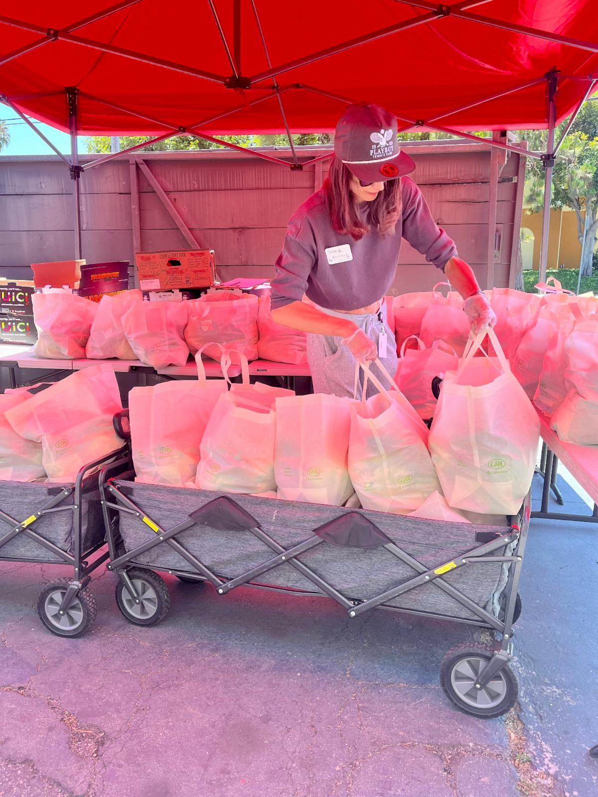 Their visit went beyond gardening; they also partnered with us to support LA County Parks and Cal Fresh Healthy Living during the Summer Parks After Dark events. With their help, we sorted and filled 200 bags of produce—an impressive 3,800 pounds of fresh fruits and vegetables. This allowed us to serve 800 people in a single day, providing each family of four with a nourishing bag of produce.