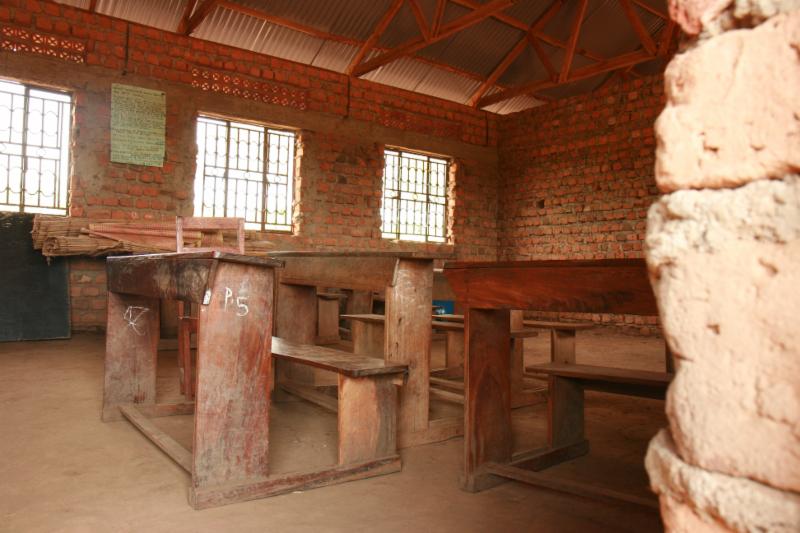 In 2011, our first three classrooms were roofed and partially finished, and we were elated. There were no windows, doors, ceilings, and a dirt floor, but kids were finally in permanent buildings on our land. "Slowly by slowly" as they say in Uganda, the classrooms have been plastered inside and out; doors, windows, floors and ceilings installed; and the buildings fully painted. The buildings are well-built and a source of pride for the children and community.