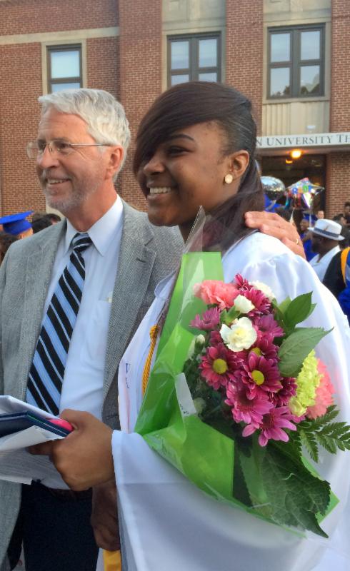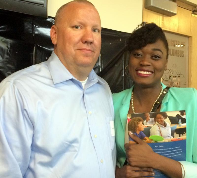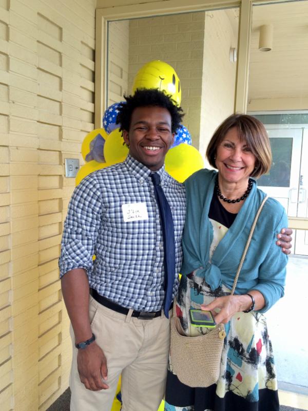 Jay'Lyn Smith, Class of 2016, met his former. Joan of Arc Principal and PCRHS board member Mary Pat Sharpe.