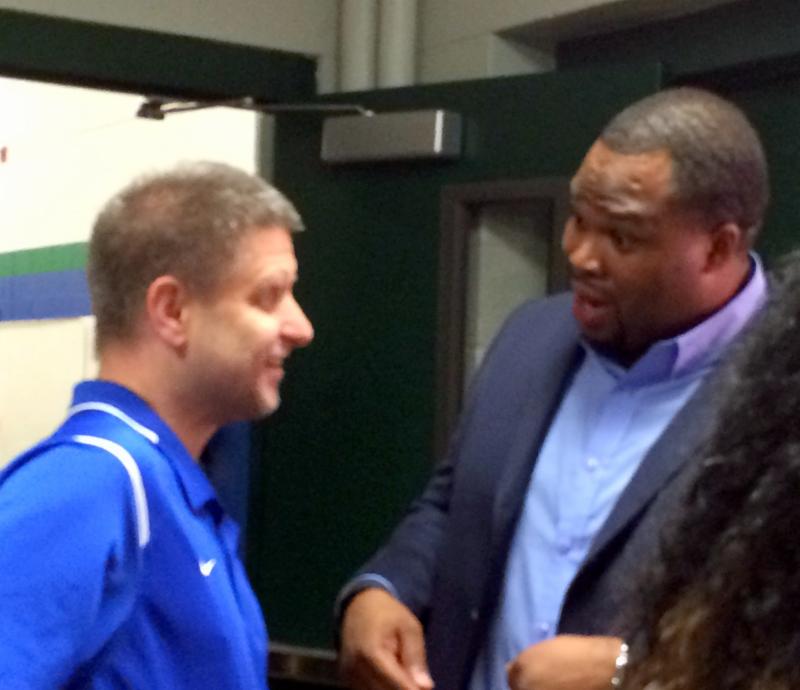 President Joseph P. Heidt introduced new principal Brian C. Dinkins to the faculty and staff in late May.