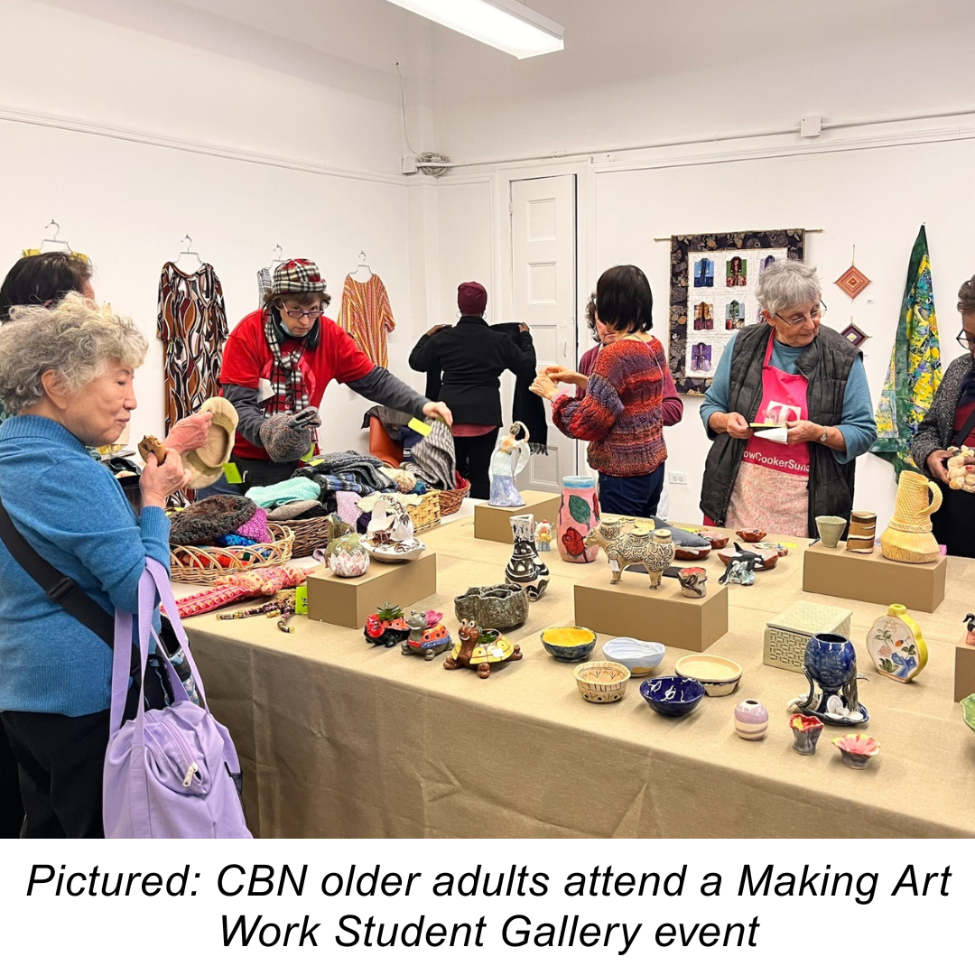 CBN's Making Art Work program plays a vital role in enhancing the psychological and physiological advantages linked to artistic practice and expression, and the ongoing collaboration with New York State Council on the Arts has been crucial for its sustained success. Building on the longstanding success of ongoing intergenerational volunteer programs at CBN, the Carter Burden Gallery Art Explorers Workshop connects older adult artists and students with other age groups on Saturdays through activities fostering understanding and respect.