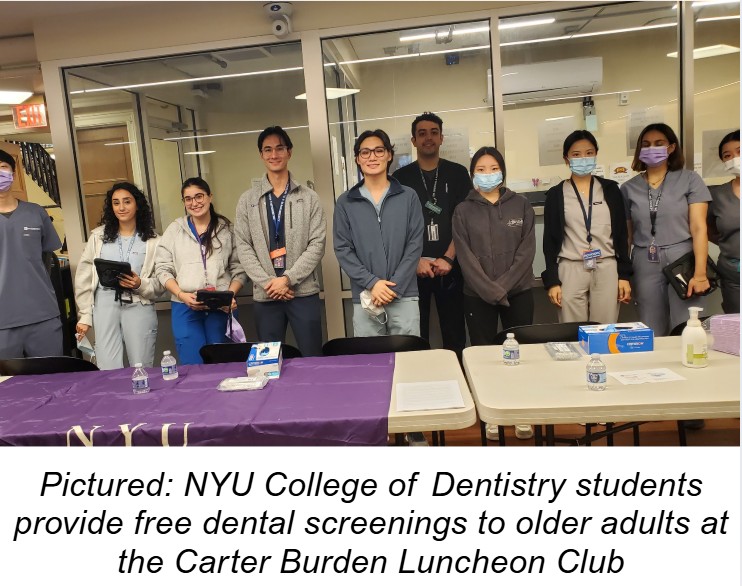 We are so grateful to the NYU College of Dentistry volunteers who joined us at the Carter Burden Luncheon Club to provide free dental screenings for our members. Thanks to their generosity, our members left with brighter smiles and a greater sense of confidence in their health. We appreciate you!