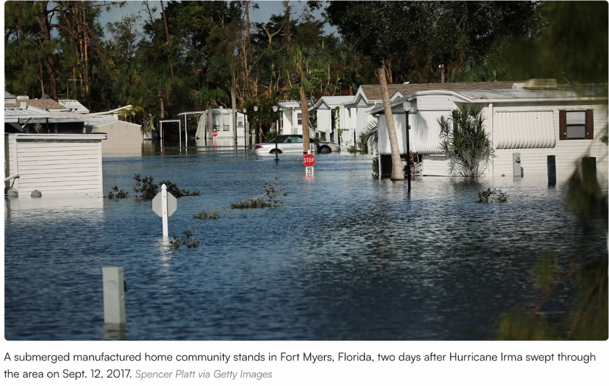 Notable quote: “Manufactured homes are often disproportionately hit by natural disasters. After Hurricane Helene, for example, a quarter of manufactured homes in North Carolina sat in counties that received a major disaster declaration, though the units only make up about 12% of housing in the state.”