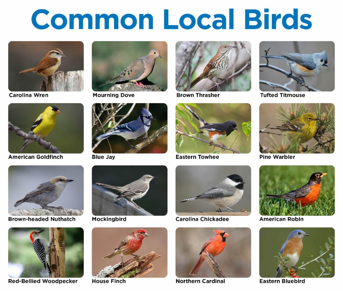 Did you know the common birds at Roper Mountain? One of of my favorite naturalist jobs is sharing my love of birding and teaching others our common birds here. We have around 450 bird species in South Carolina, but these are the birds we see or hear most frequently on the grounds here at Roper Mountain: Carolina Wren, Mourning Dove, Brown Thrasher, Tufted Titmouse, American Goldfinch, Blue Jay, Eastern Towhee, Pine Warbler, Brown-Headed Nuthatch, Mockingbird, Carolina Chickadee, American Robin, House Finch, Northern Cardinal, Eastern Bluebird, and the Red-bellied Woodpecker.